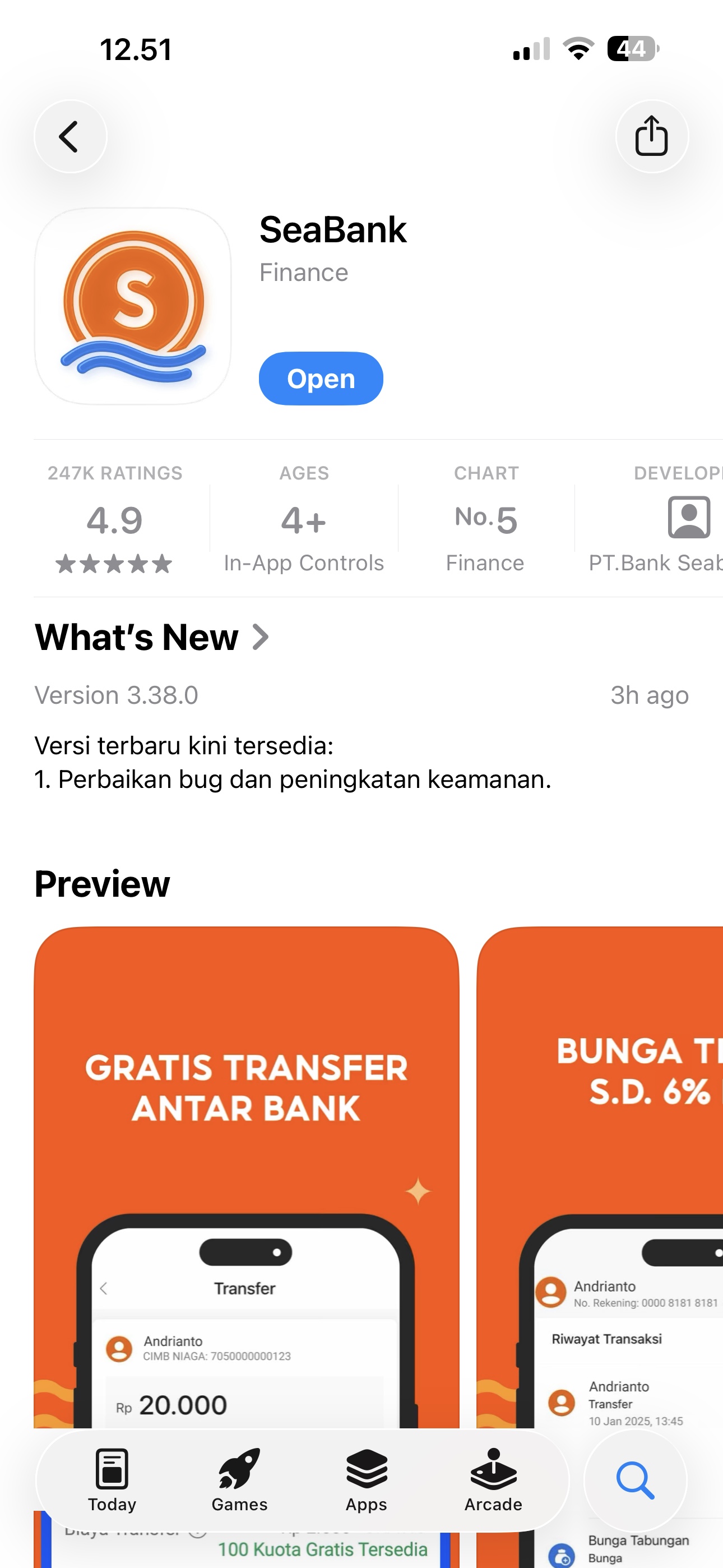 - Pengumuman pemenang akan dilakukan LIVE di Media Sosial resmi SeaBank dan ditampilkan pada aplikasi SeaBank selambat-lambatnya 14 (empat belas) hari kerja setelah periode promo berakhir