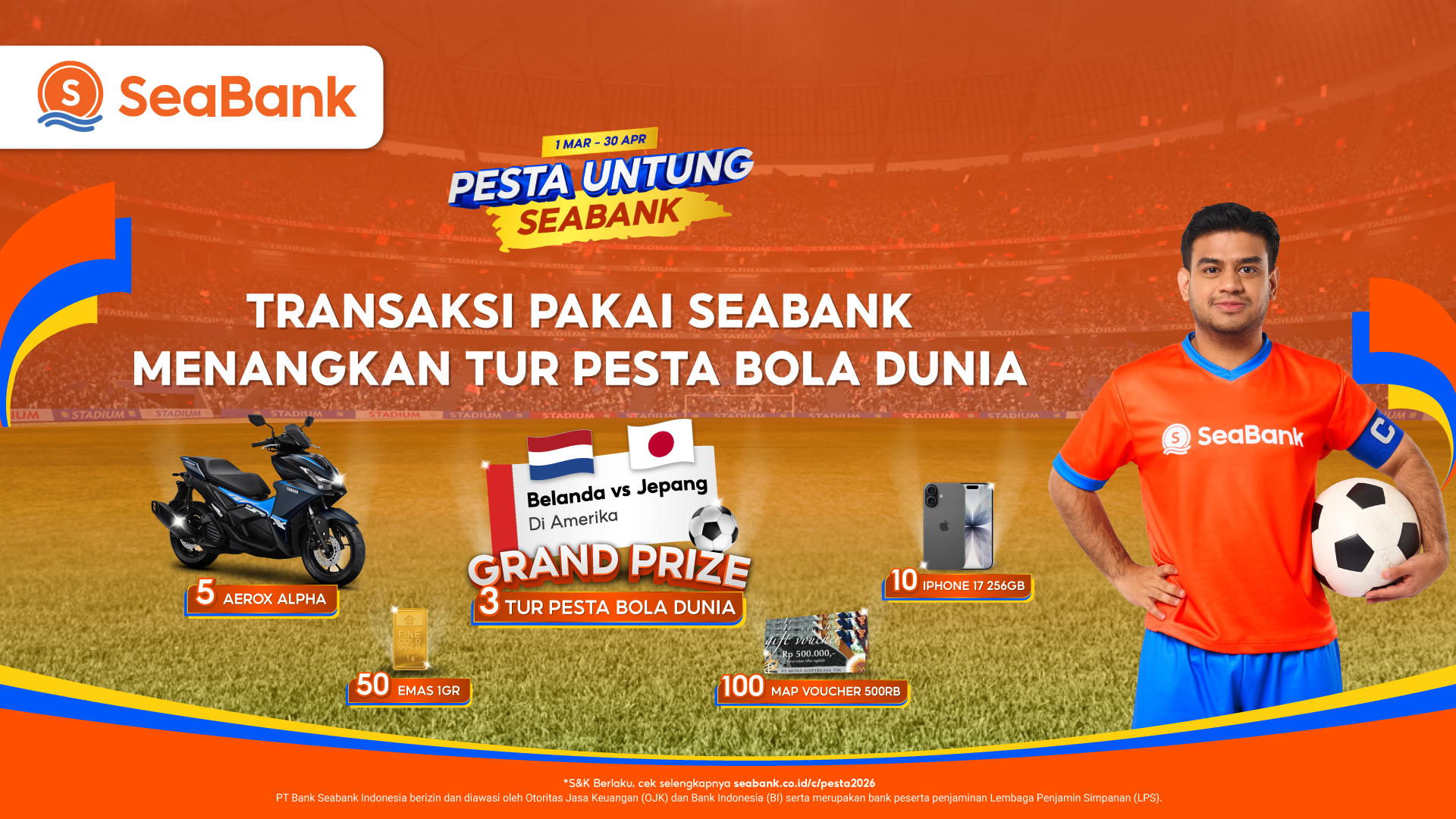 - Pajak seluruh hadiah ditanggung oleh PT Bank Seabank Indonesia dan promo ini tidak dipungut biaya apa pun