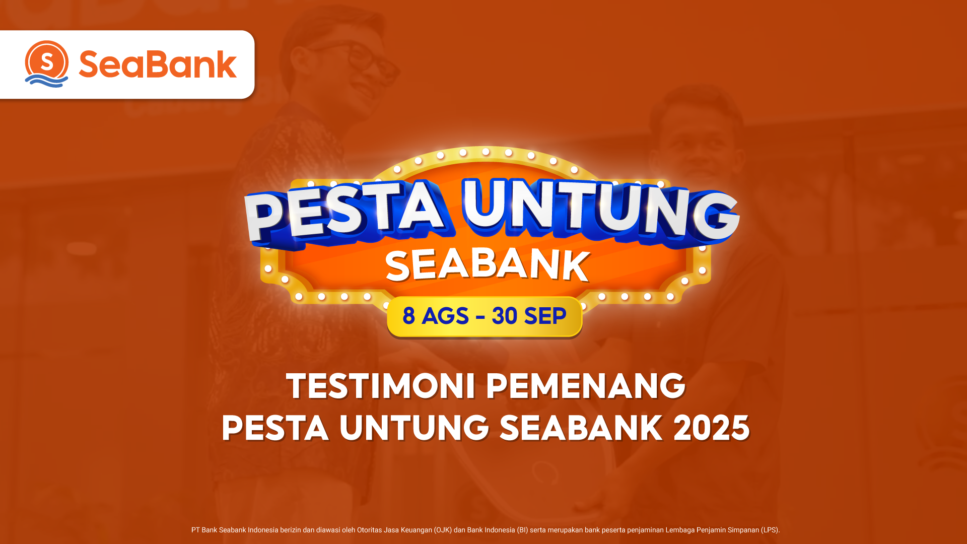 - Pemenang terpilih akan dihubungi oleh agensi resmi yang bekerja sama dengan SeaBank. Jika kamu terpilih menjadi pemenang, maka kamu bersedia untuk memberikan data diri yang dibutuhkan sebagai bentuk konfirmasi